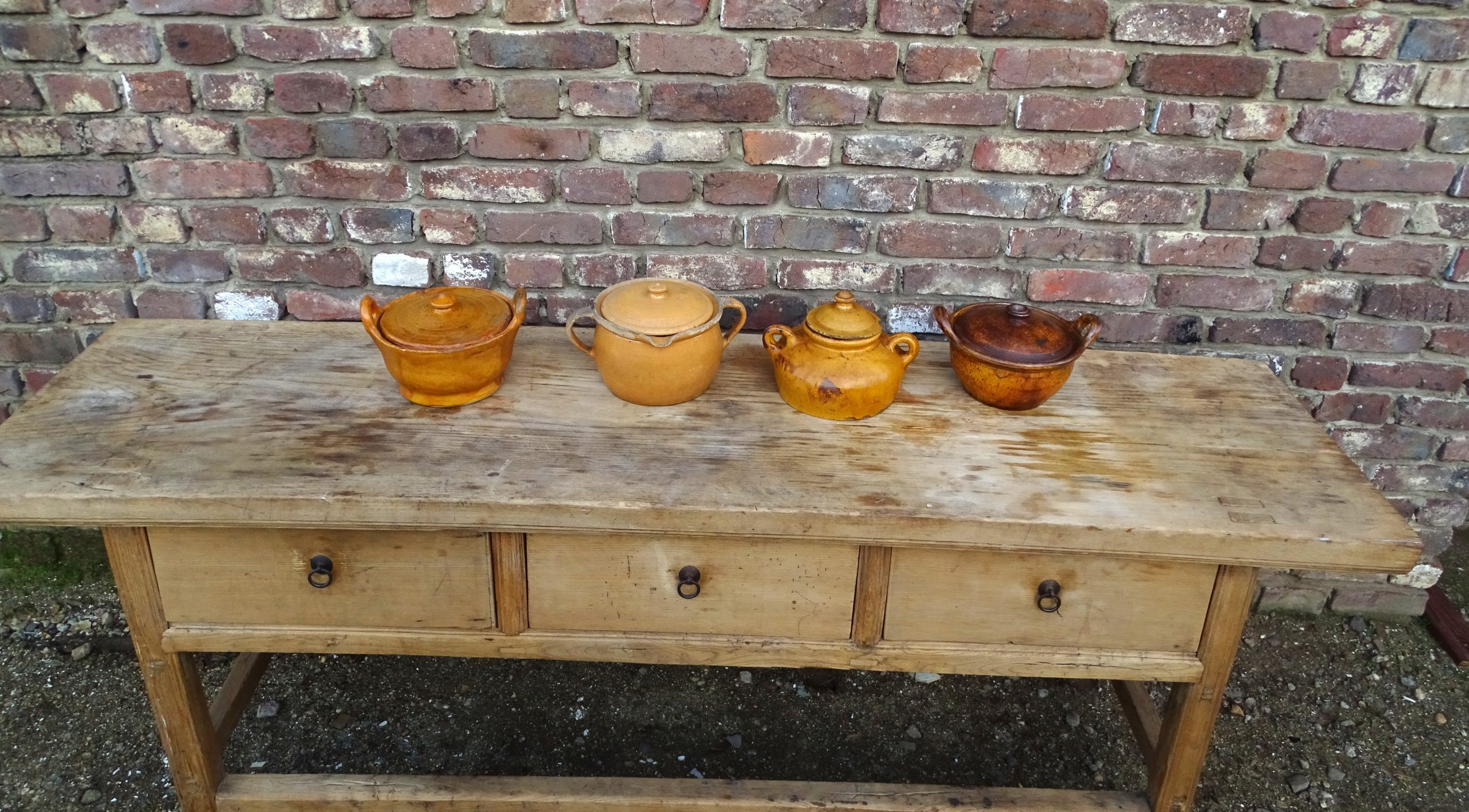 4 oude aardewerken potten ketels