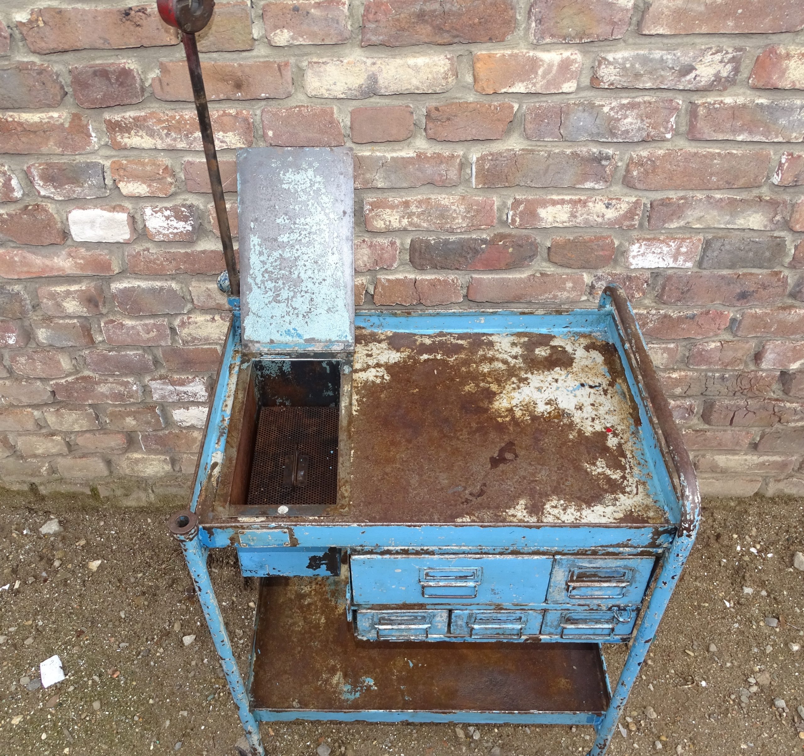 oude ijzeren werkbank werktafel kast dressoir industrieel