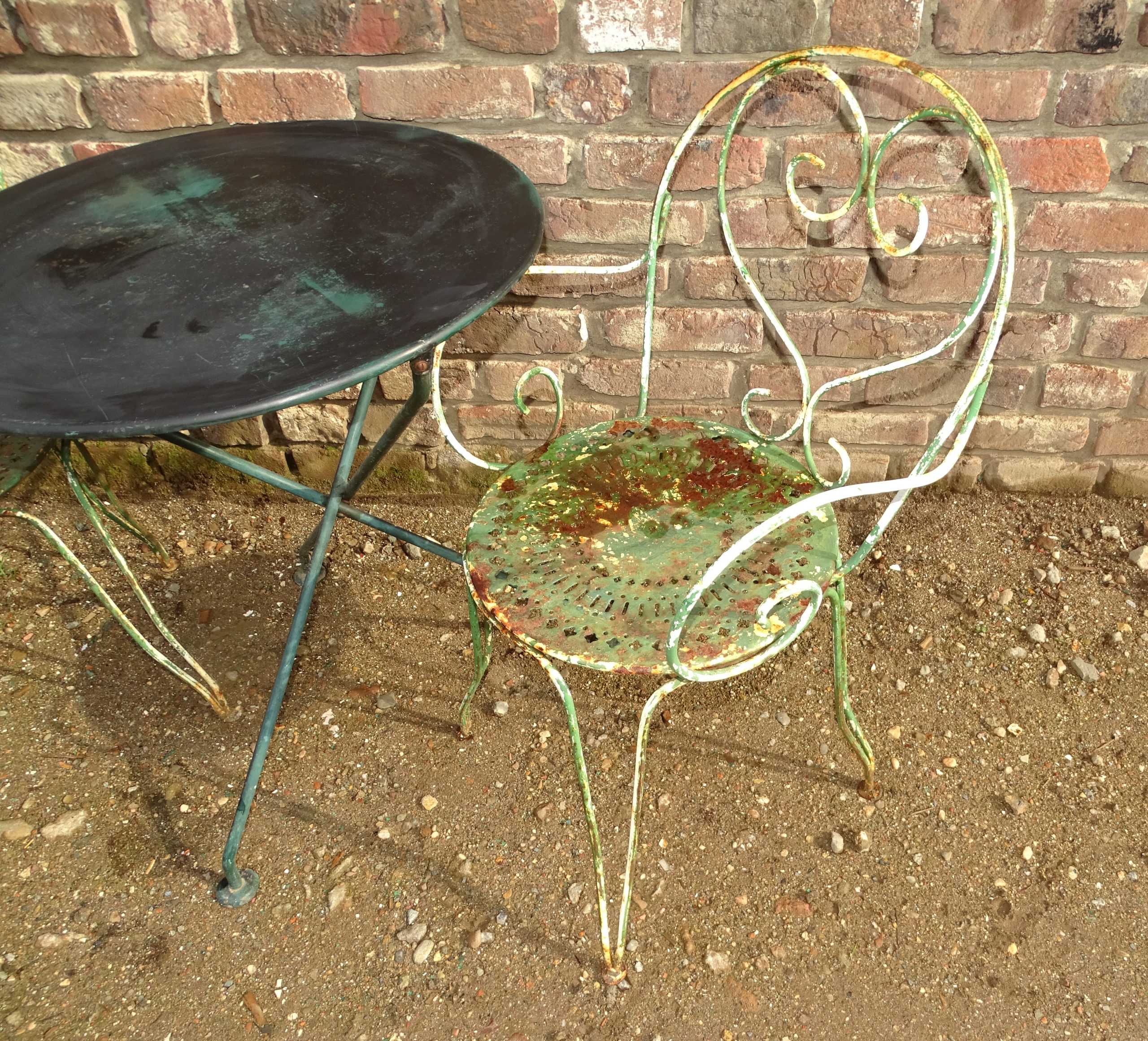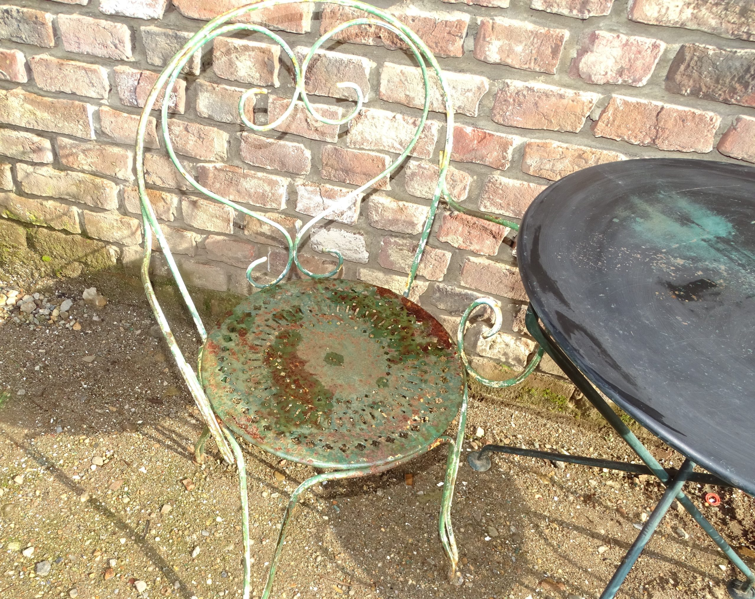 / oud ijzeren bistroset tuinset bistrotafel met 2 stoelen