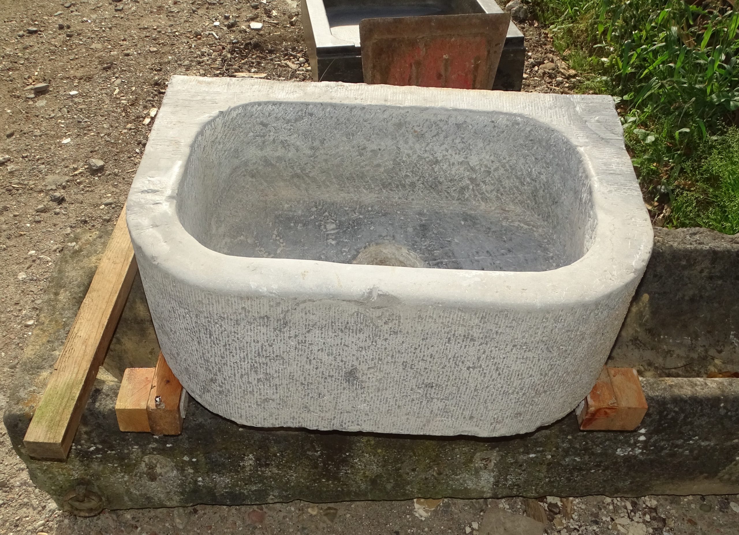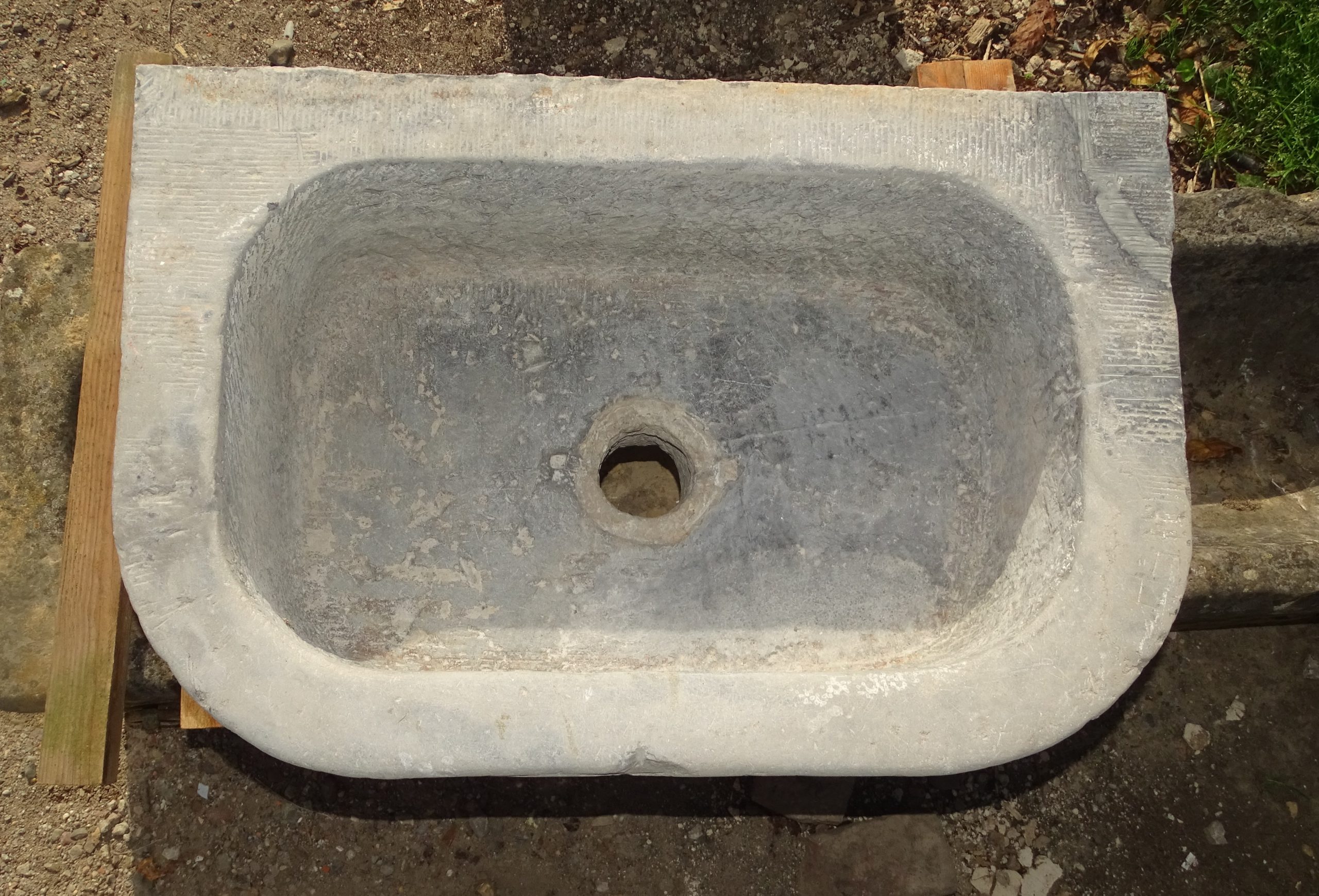 oude arduinen gootsteen is aan de zijkant een nieuw stuk ingezet omdat dit eruit geslepen was afm 75 cm bij 50 cm hoogte 30 cm