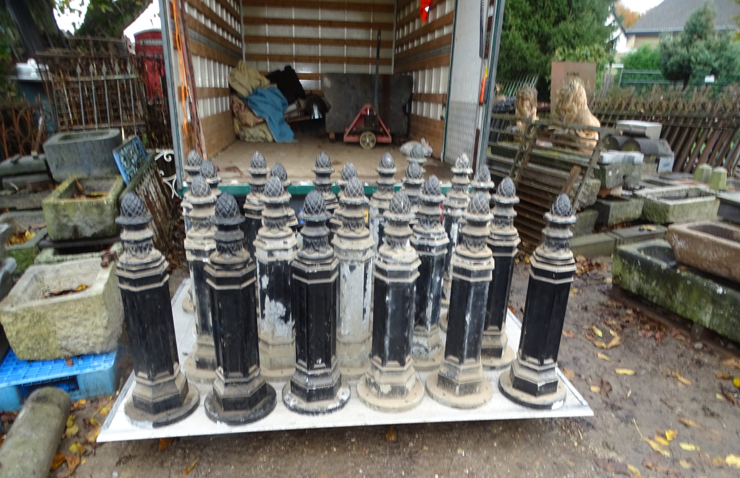 oude gietaluminium palen paal hoogte 98 cm doorsnede grondplaat 32 cm vaste prijs €80,00 per stuk of €1500,00 voor alles (22 stuks)