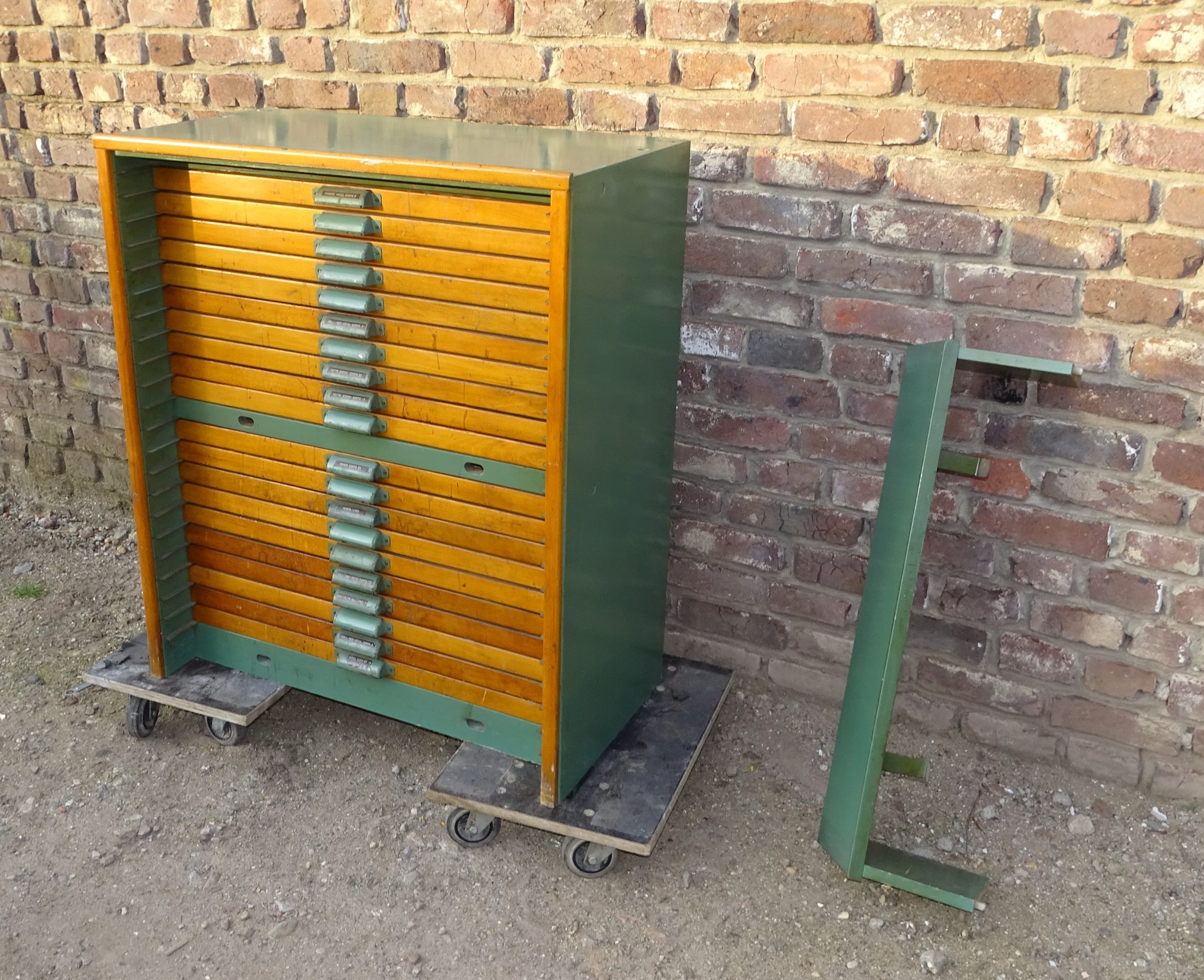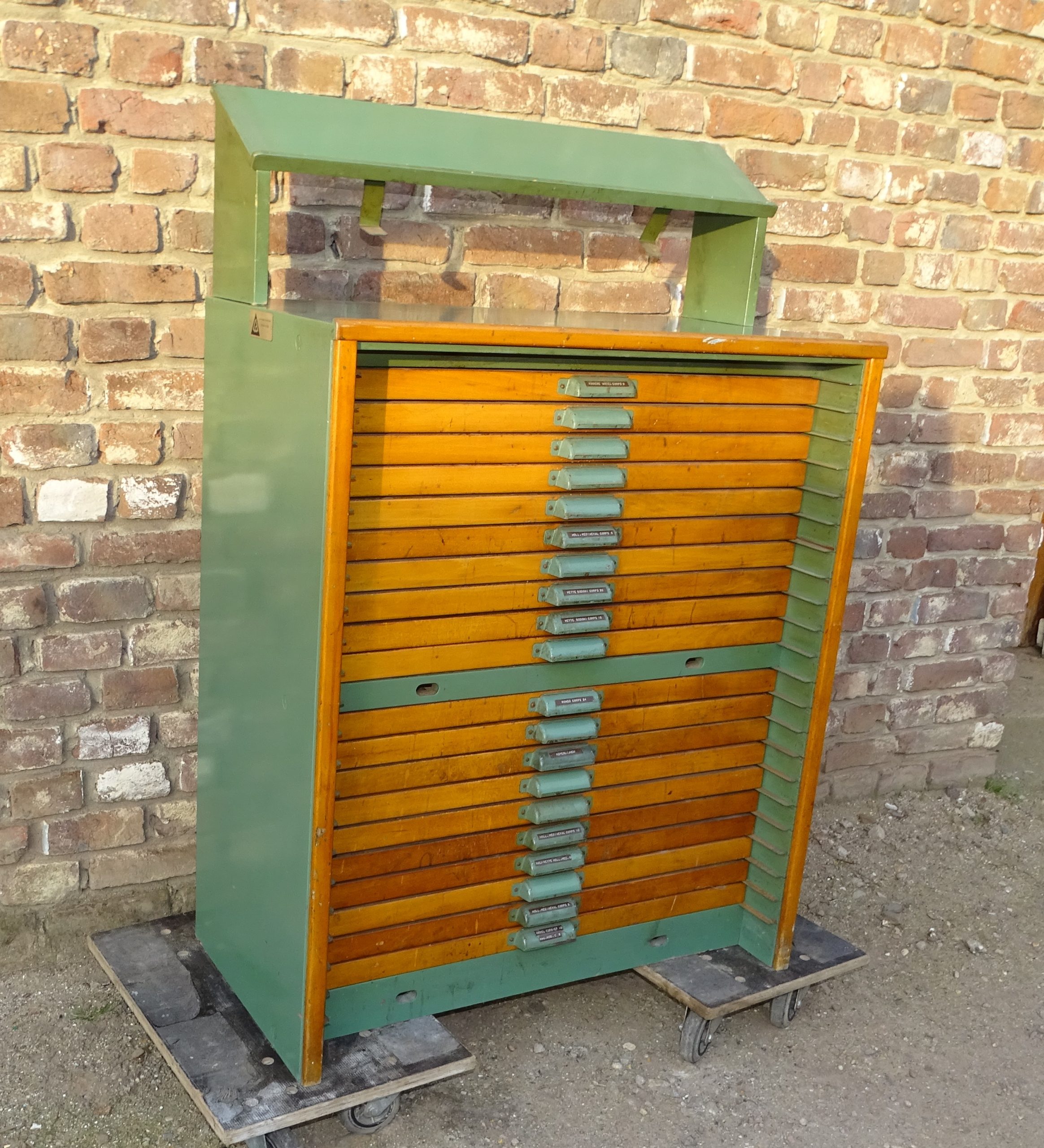 oude letterkast zetkast uit drukkerij fourniturenkast