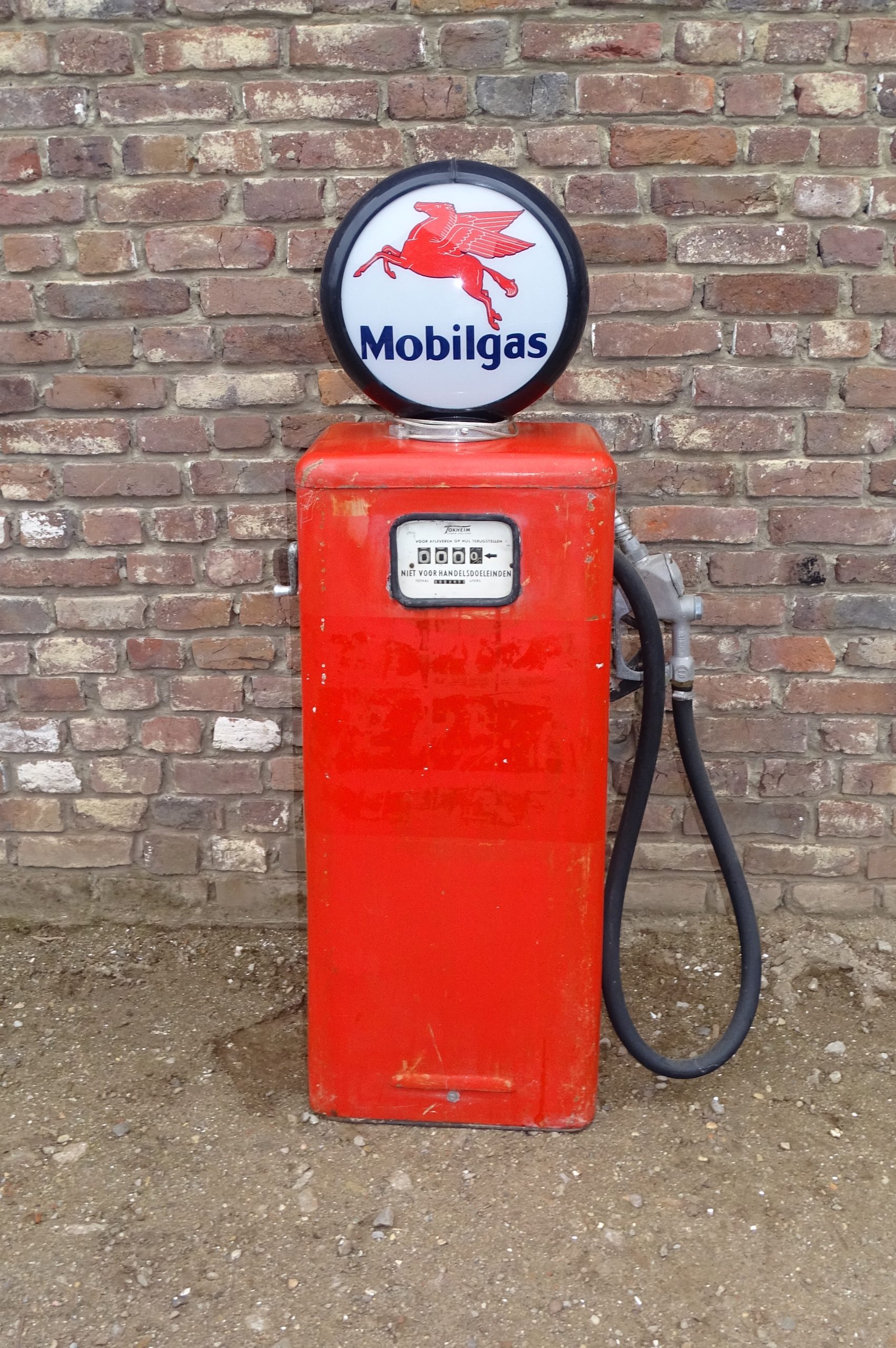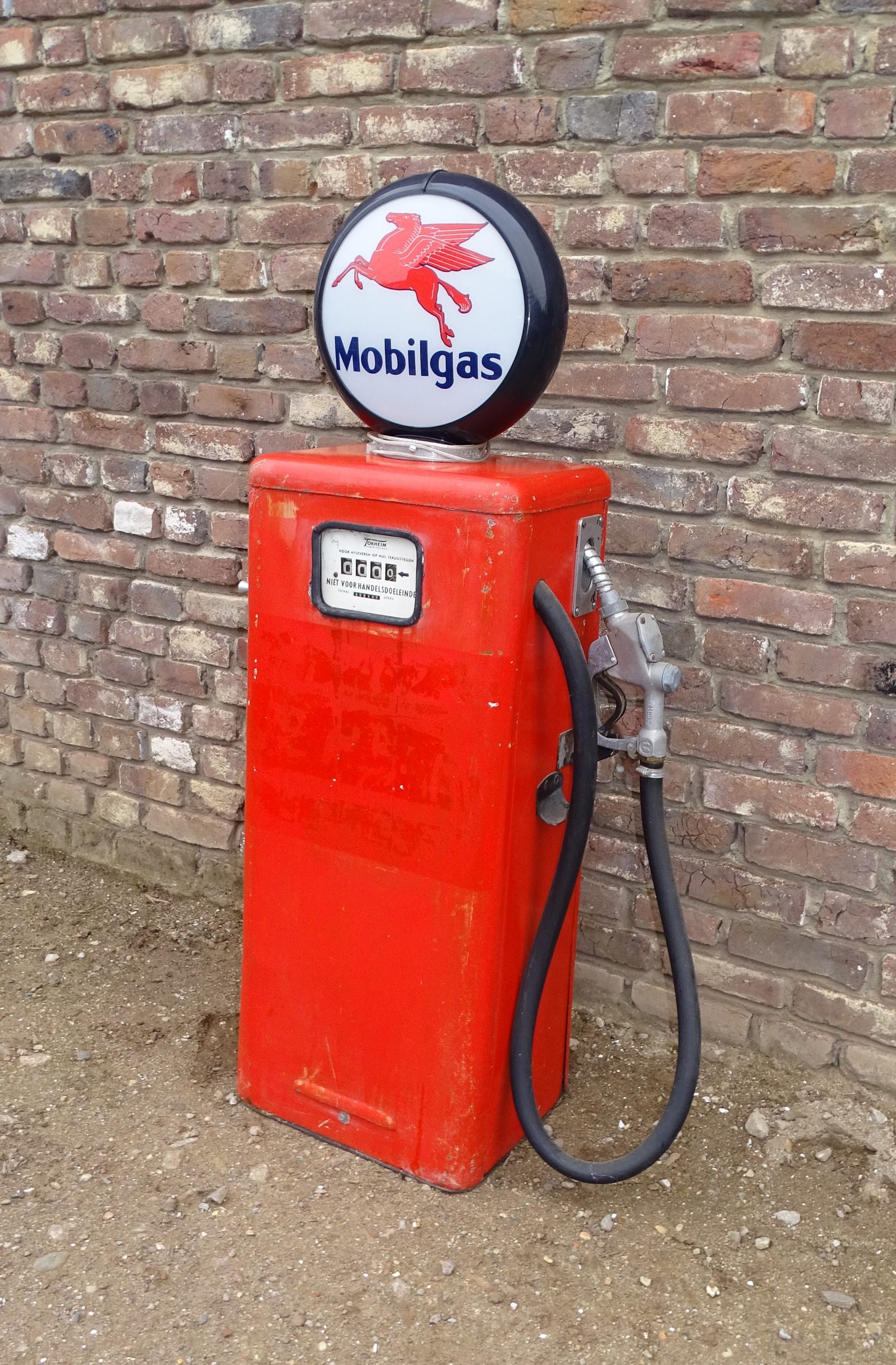 oude tokheim benzinepomp met mobilgas bol pomp is oud bol is nieuw hoogte alleen pomp 110 cm hoogte totaal 150 cm