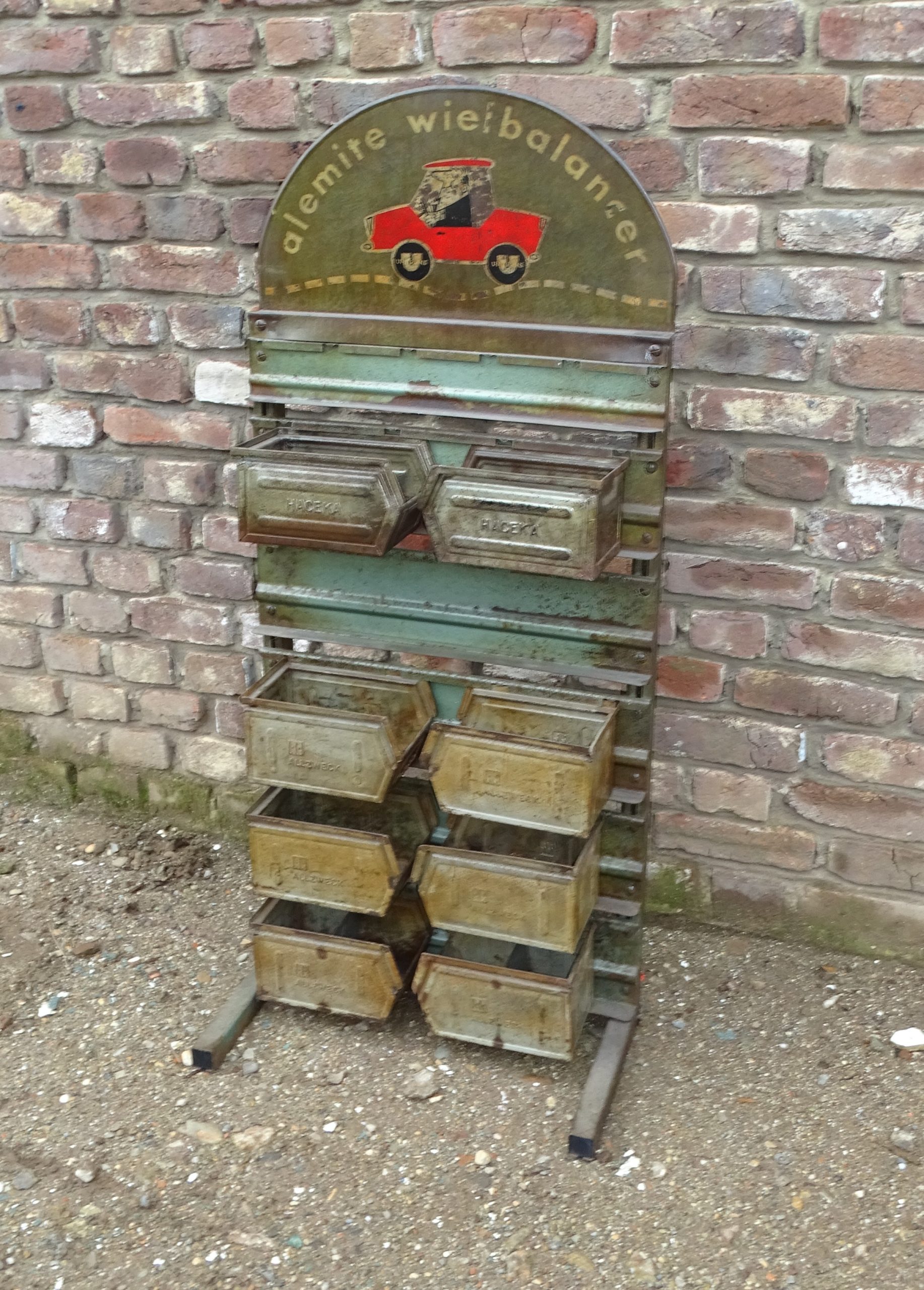 vakkenkastje met voorraadbakjes uit autogarage